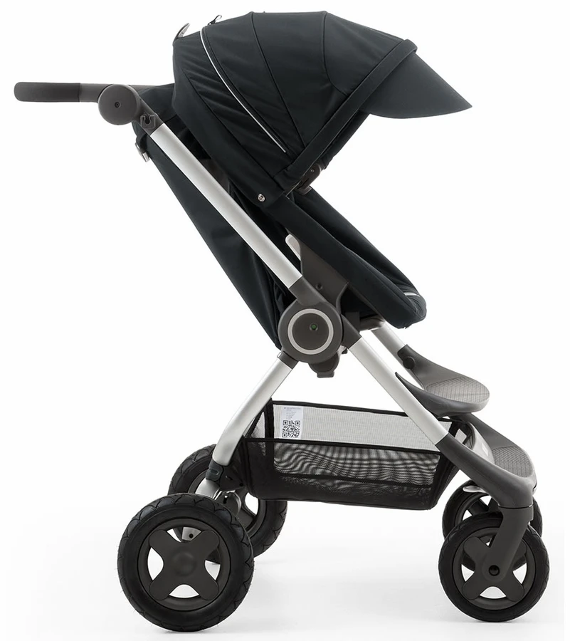 - Materials: Chassis: Aluminium and plastics. The upholstery is made of polyurethane, the transparent rain cover is made of phtalate free PVC. The mosquito net is made of polyester mesh and the shopping basket is made of PVC/polyester filament.