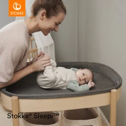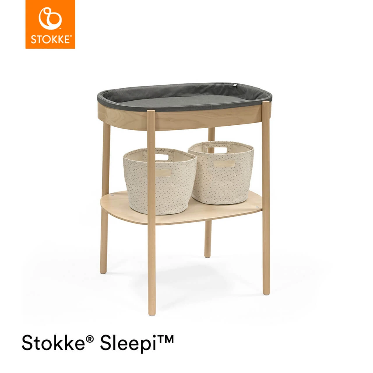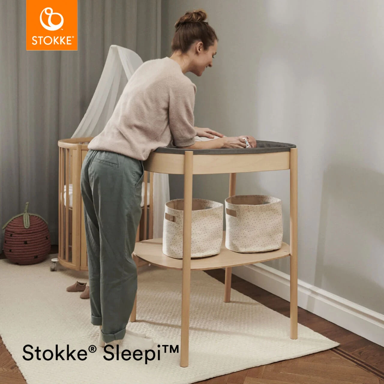This compact and practical Stokke® Sleepi™ Changing Table offers convenient place to change your baby that perfectly compliments Stokke® Sleepi™ nursery collection. This Red Dot winning changer features stylish oval design that contains soft padded changing station and open shelf underneath, which provides enough space for baby’s essentials. The piece of furniture is made of durable materials including elegantly finished beech wood legs. The changer is tested to highest standards on stability and restricted substances.