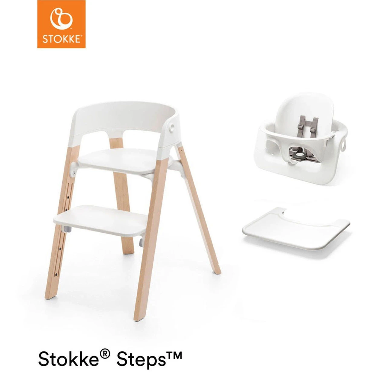 - Suitable from 6 months with the Stokke® Steps™ Baby Set & Tray (included)