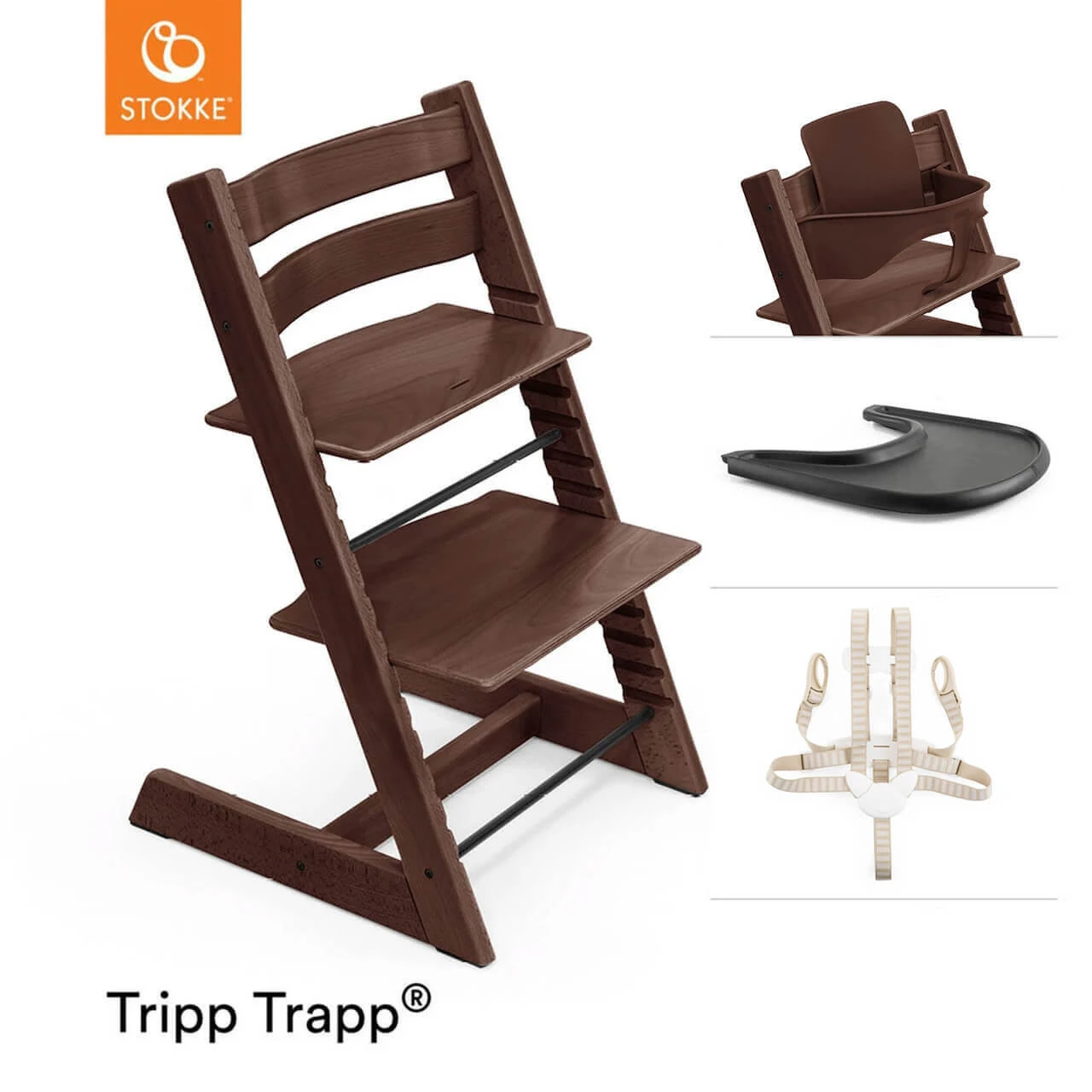 The Stokke® Tripp Trapp® chair is suitable to use from birth as a high newborn lounger with specially designed Newborn Set up to approx. 6 months. After that, it is intended for use as a proper feeding highchair with other optional accessories including Baby Set, Tray, Cushion and Safety Harness , which can be detached over time. The chair itself can be used for the rest of the childhood and even longer up to 136kg/300lbs of maximum user weight!