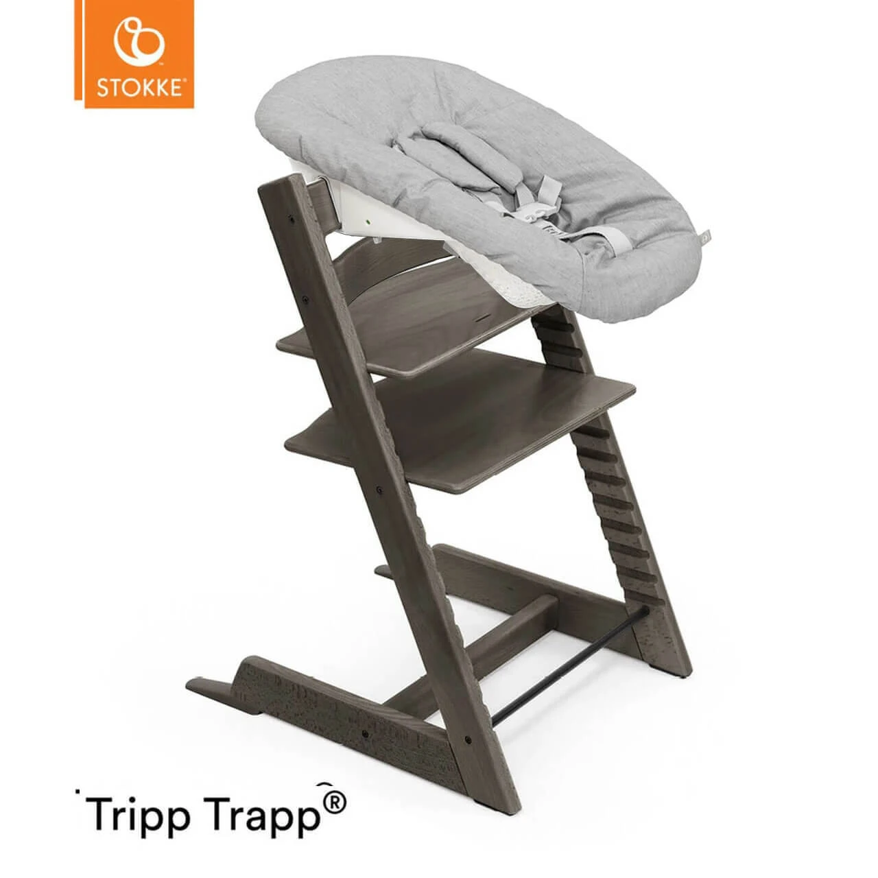 The Stokke® Tripp Trapp® chair is suitable to use from birth as a high newborn lounger with specially designed Newborn Set up to approx. 6 months. After that, it is intended for use as a proper feeding highchair with other optional accessories including Baby Set, Tray, Cushion and Safety Harness , which can be detached over time. The chair itself can be used for the rest of the childhood and even longer up to 136kg/300lbs of maximum user weight!