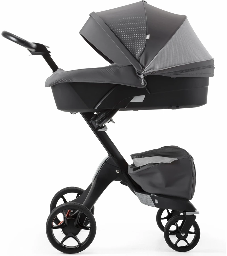 Bring your beautiful newborn to explore the world safely from the Stokke Xplory Carry Cot. Its luxuriously soft interior and hard-shell exterior are designed specifically to keep your newborn cozy and safe on your adventures in the city, to visit Grandma, or just around town. Extremely stable and easy to maneuver, Stokke Xplory Carry Cot fits right to the Stokke Xplory Chassis and is the perfect carriage for you and baby when out and about. Suitable for birth to 20 lbs. Hood for Stokke Xplory carry cot is not included. It can be purchased separately or if you have the Stokke Xplory with seat, the hood is interchangeable.